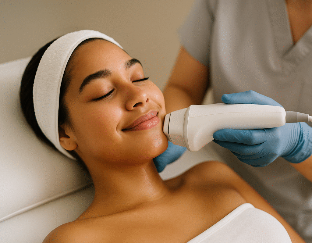 Energia focalizada em camadas profundas para efeito lifting sem cirurgia.